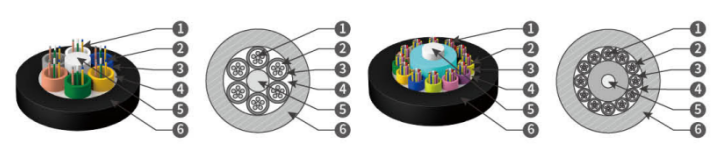A GYFTZY optikai kábel felépítése az, hogy egy 250 µm-es optikai szálat egy nagy modulusú anyagból készült laza köpenybe zárjon, és a köpenyt vízálló anyaggal töltse fel. A kábelmag közepe üvegszál erősítésű műanyag (FRP). A laza köpeny (és a töltőkötél) a központi erősítőmag köré tekerve egy kompakt és kör alakú kábelmagot képez. A kábelmag belsejében lévő rések vízálló töltőanyaggal vannak kitöltve. A kábelmag külső oldalán extrudált égésgátló burkolatot helyeznek a kábel kialakítására.